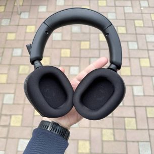 Am spus de confort remarcabil. Căștile acestea INZONE H5 sunt mai confortabile decât noile ULT Wear, decât 1000XM5 și decât orice alte căști over-ear purtate de mine. Cupele, care ascund drivere de 40 mm, sunt dintr-un material moale, cu o elasticitate care mă face să mă gândesc la un soi de memory foam. Urechea îmi intră cu totul în interiorul cupei, iar contactul acelui material moale cu capul este foarte plăcut și confortabil.